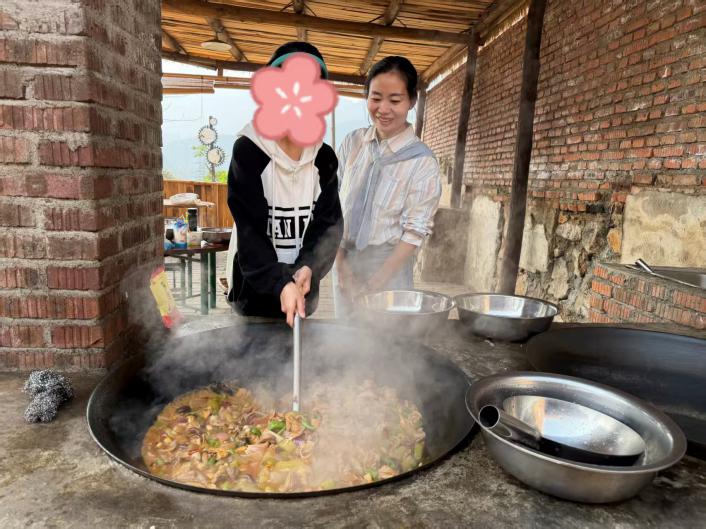 最暖心的是柴火鸡烹饪体验。“爱心妈妈”带领孩子们洗菜、切配、生火、烹饪,分工协作、其乐融融。烟火气里,不仅有美食飘香,更有悉心陪伴与真情交流,让孩子们真切感受到家庭般的温暖与关爱。